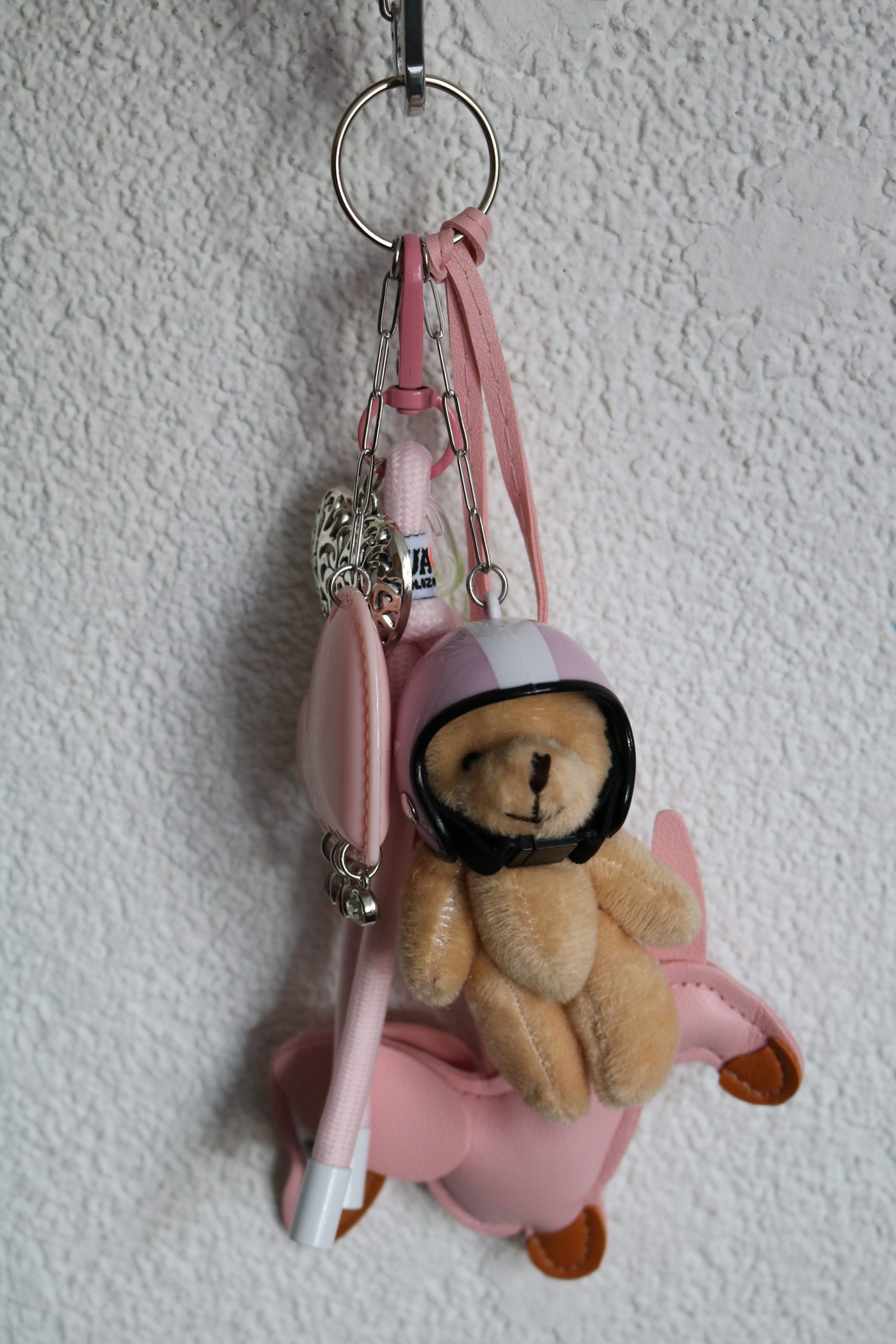 Aan de tashanger zit een handige haak (zie foto) waarmee je het makkelijk aan je tas kan bevestigen.