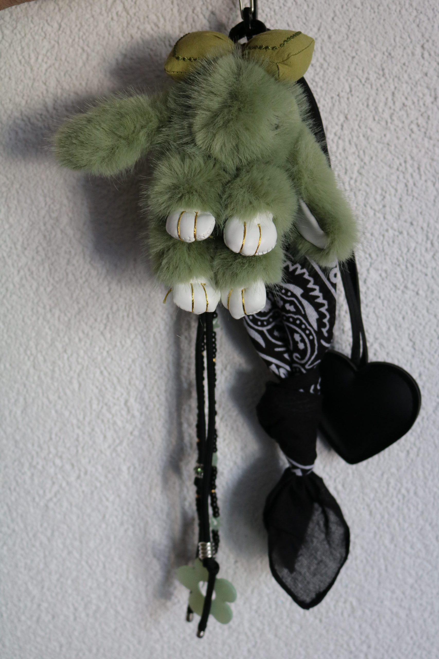 Met een paracord met een grote bedel, grote pluche hart en een lange leder look hart.