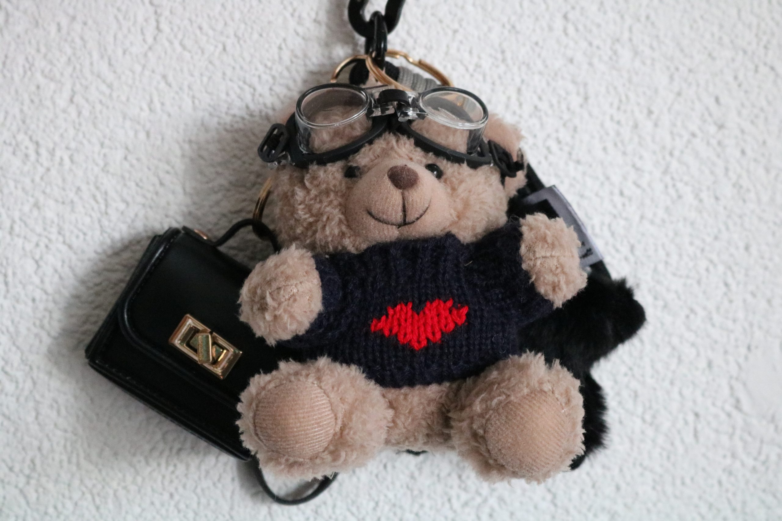 Met een schattig beertje, het beertje heeft een stoer truitje met een hart.