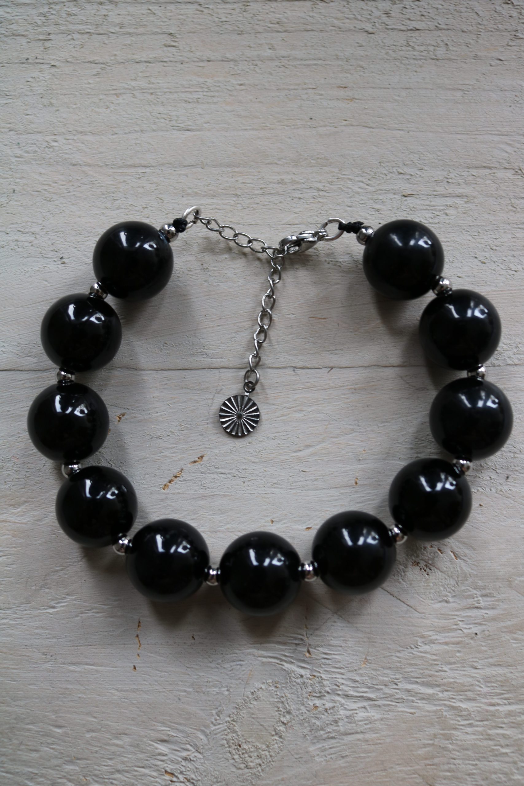 Leuke armband met grote ovalen kralen van acryl.