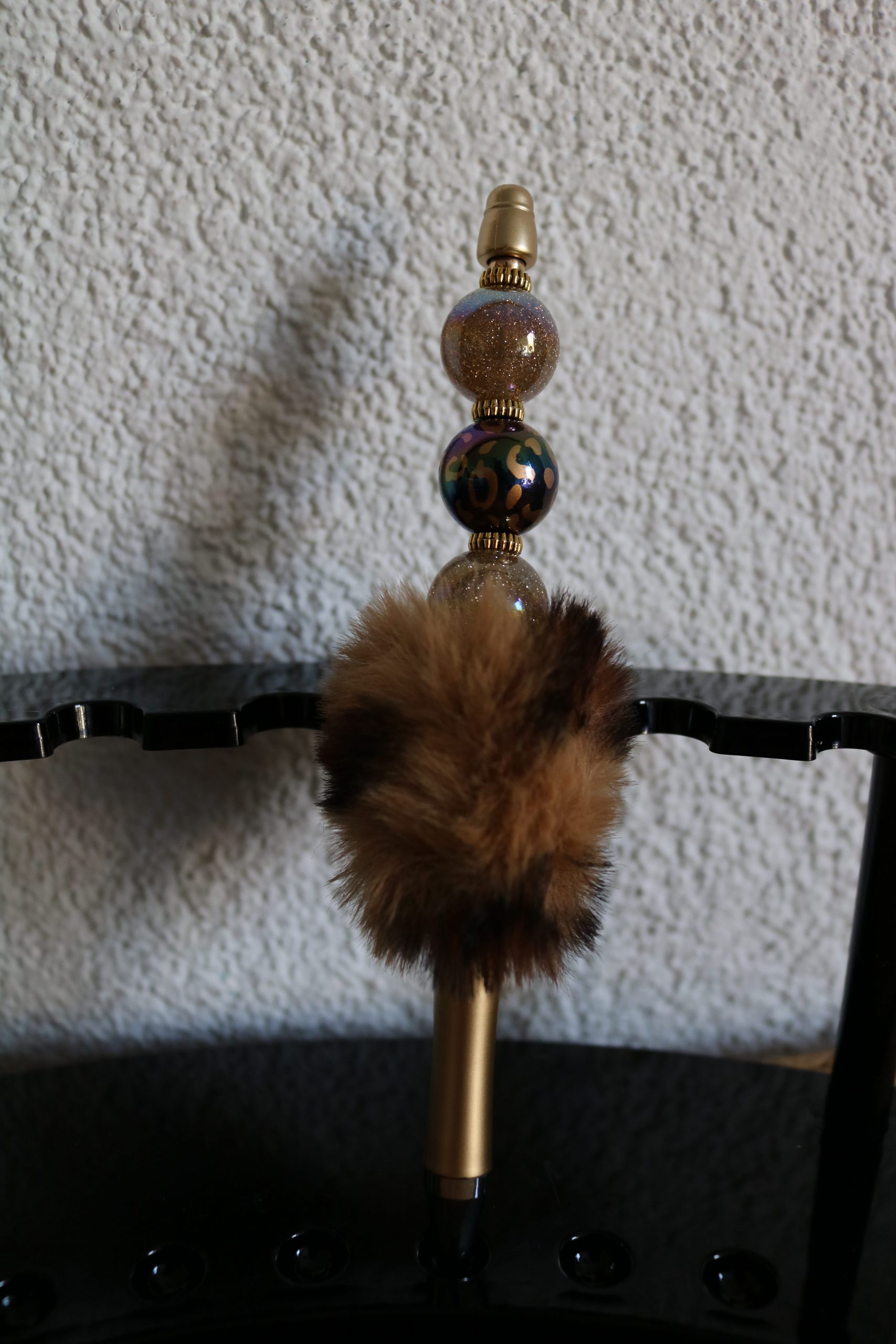 De pen is met luxe kralen afgewerkt en een fluffy.