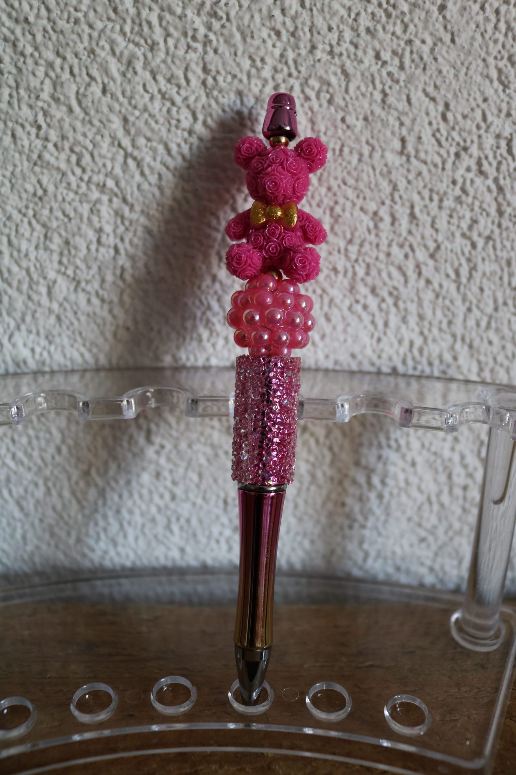 De pen is met luxe kralen afgewerkt en een beertje (kleine roosjes).