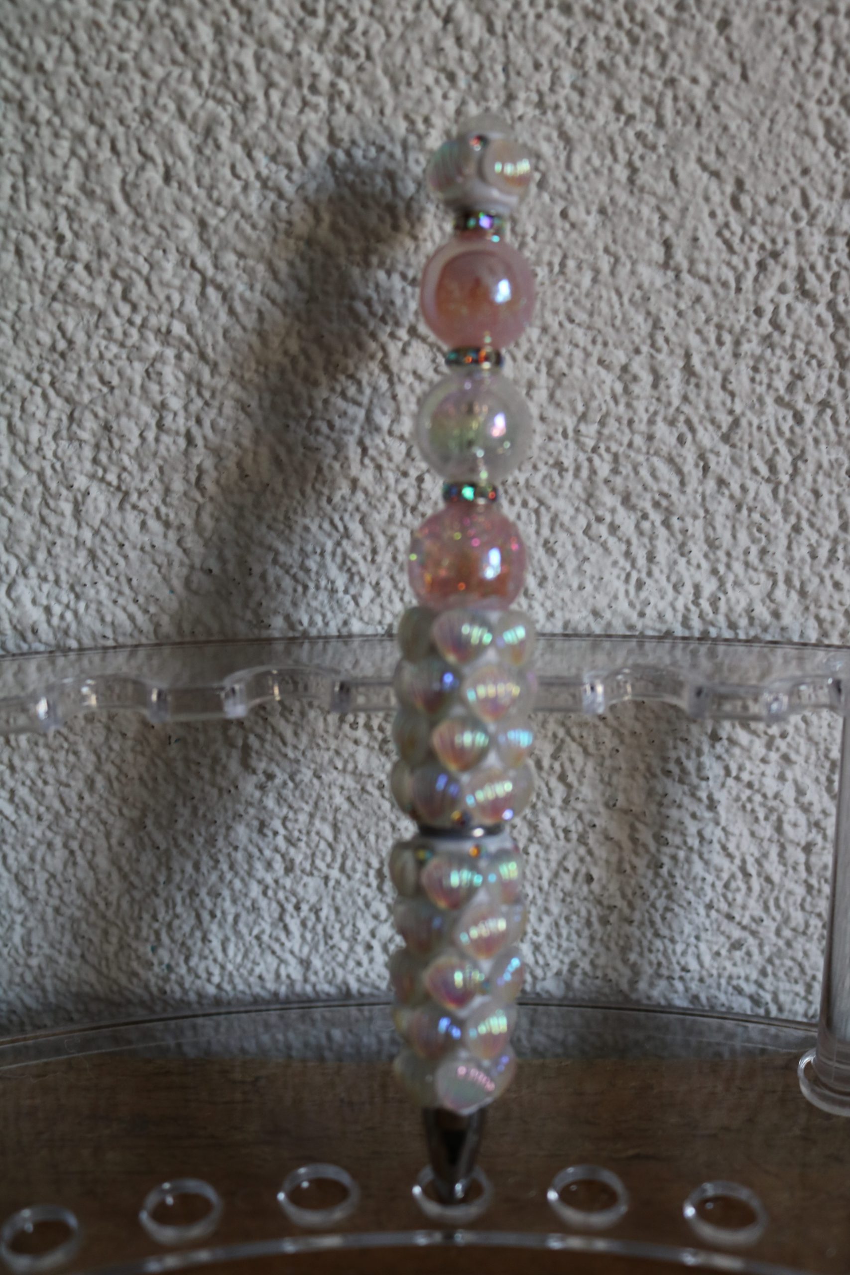 De pen is met luxe kralen afgewerkt.