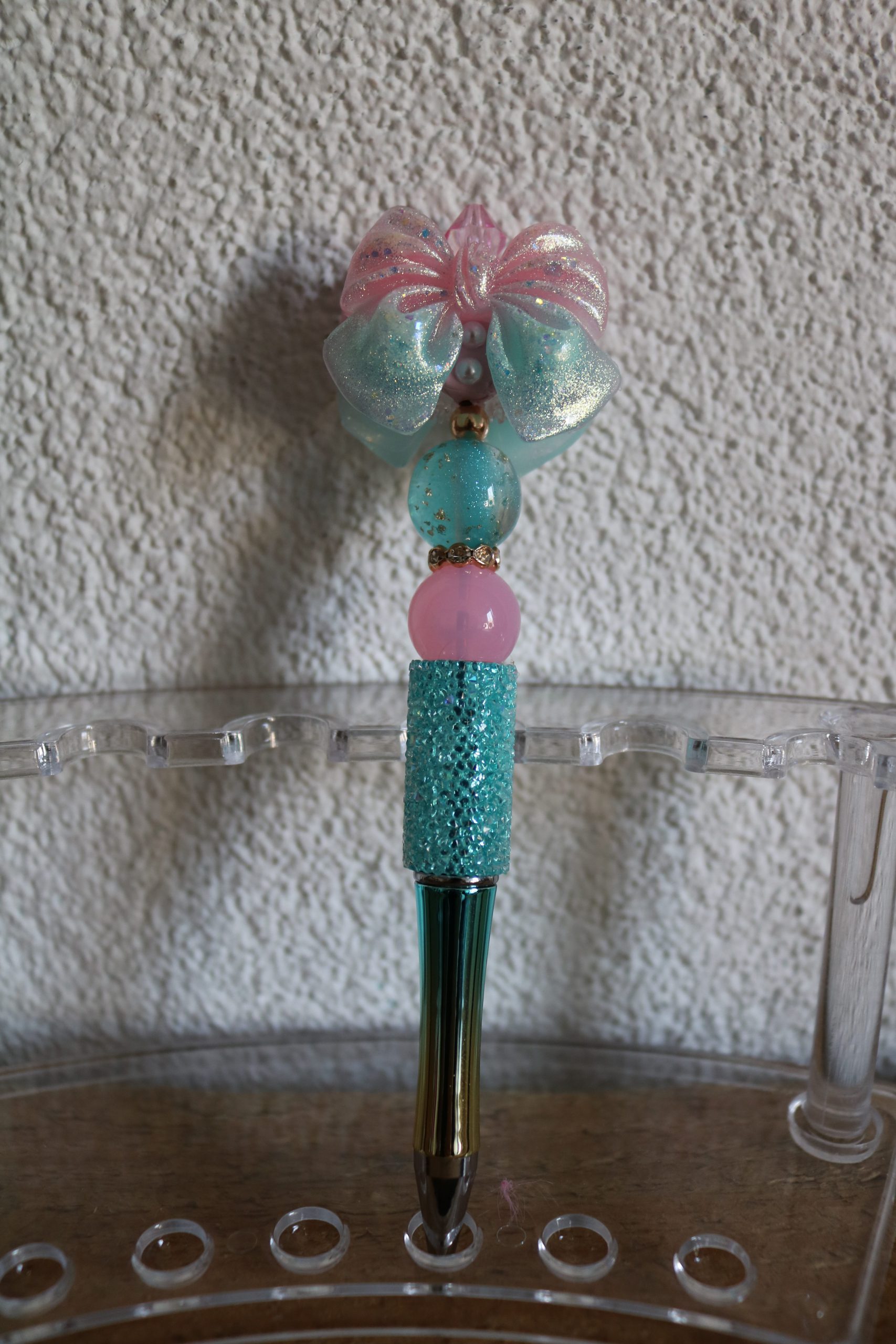 De pen is met luxe kralen afgewerkt en een gave strik.