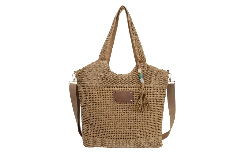 Zomerse blikvanger: Het soepele, opengewerkte design en de bijpassende bag charm met kraaltjes en een kwastje geven de tas een populaire look die direct inspeelt op de vraag naar vakantie-accessoires.