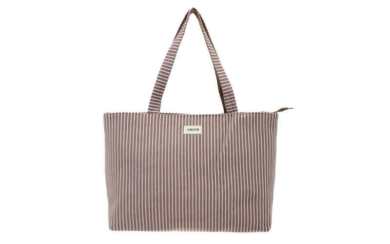 Zomerse eyecatcher: De kleurrijke strepenprint en het ‘AMOUR’ label op de voorkant spelen direct in op de actuele trend van vrolijke en positieve damesaccessoires.