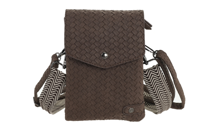De Brisbane speelt slim in op de aanhoudende trend van compacte telefoontasjes. Dit model onderscheidt zich in uw collectie door de luxe ogende gevlochten structuur en de veelzijdigheid van twee meegeleverde schouderbanden.